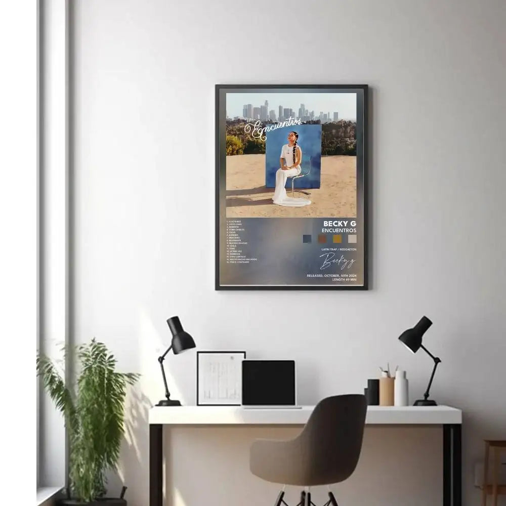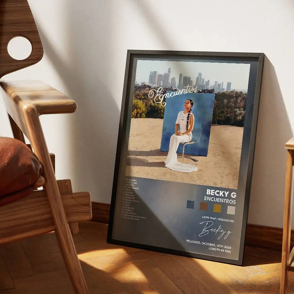 Celebrate the release of Becky G’s 2024 album Encuentros with this sophisticated, limited-edition poster. Shot against the urban backdrop of Los Angeles, this artwork blends modern reggaeton aesthetics with a polished visual style—capturing the heart of Latin pop, trap, and identity.