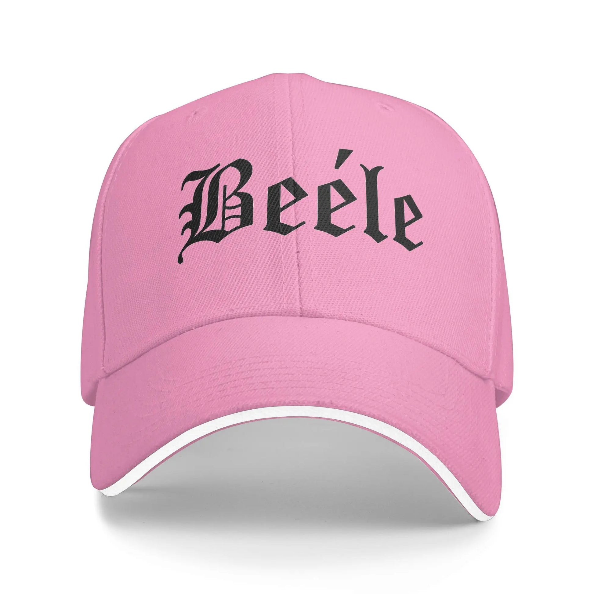 Part of Beéle’s official merch drop, this pink rapper cap features the bold Beéle logo embroidered in gothic style, making it a standout piece for collectors and fans alike.