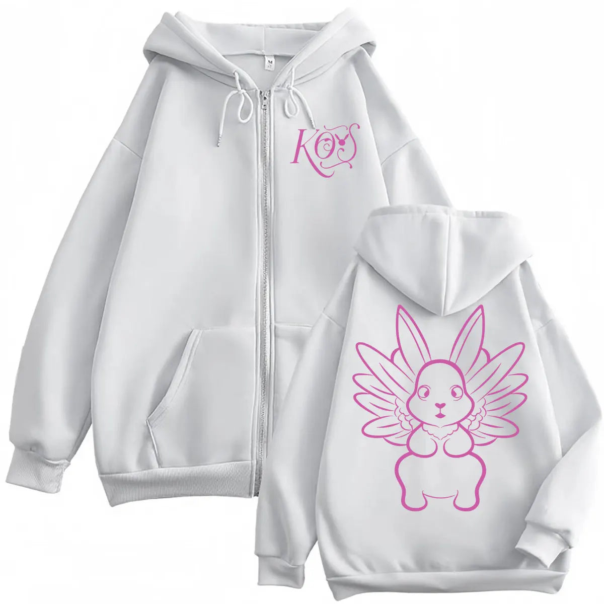 Shop the Kenia OS white zipper hoodie, a stylish zip-up sweatshirt designed for fans who love trendy streetwear and exclusive pop-inspired merch.