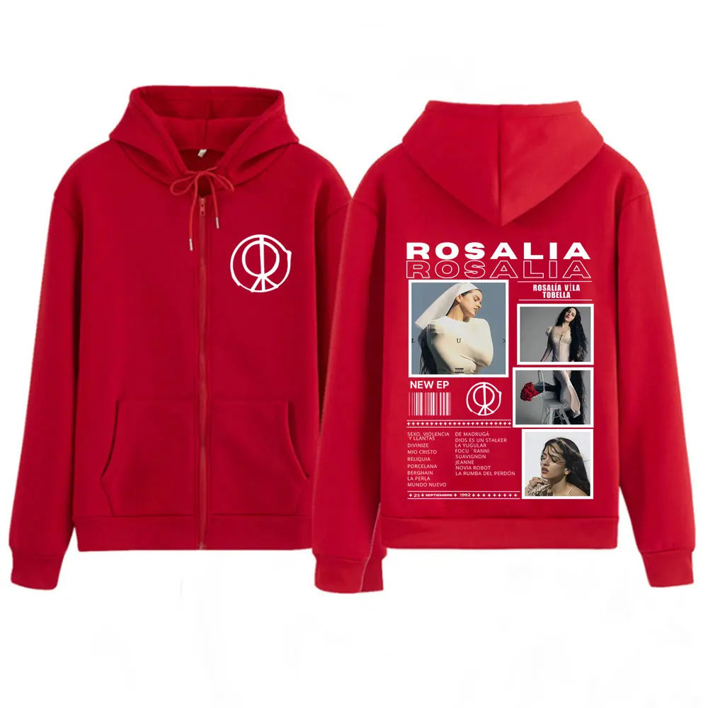 Rosalía LUX Album Tour 2025 Zipper Hoodie – Red