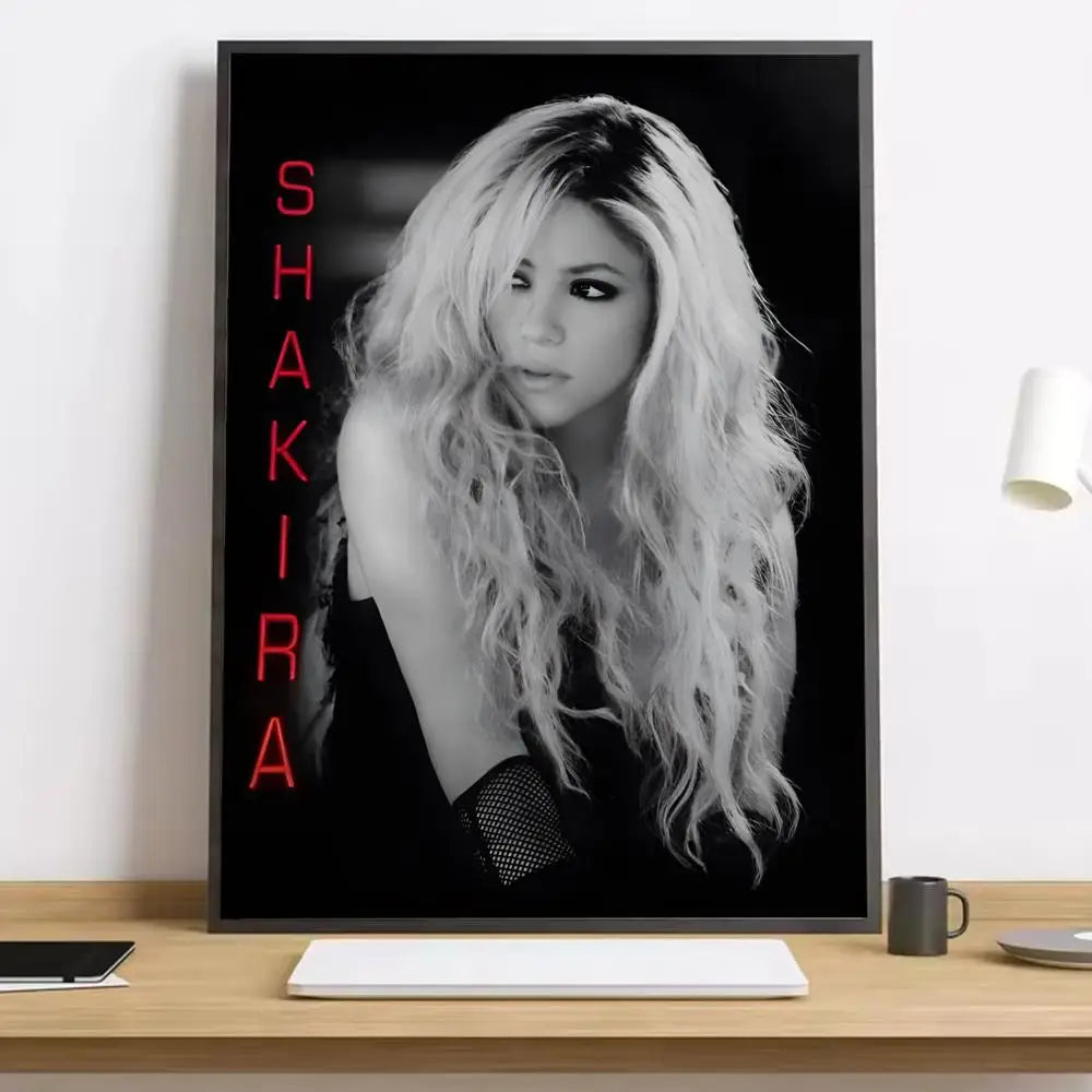 Upgrade your space with this Shakira black and white poster, featuring a high-contrast portrait and a striking red vertical “SHAKIRA” neon-style typography. A clean, modern piece of Shakira wall art that instantly elevates any room.